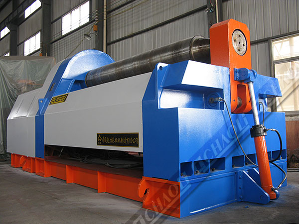 弧線四輥卷板機(jī)的兩側(cè)輥?zhàn)龌【€升降運(yùn)動(dòng),下輥和兩側(cè)輥升降采用液壓傳動(dòng)。升降位移采用計(jì)算機(jī)控制、液壓控制翻到,設(shè)備采用NC或CNC控制。