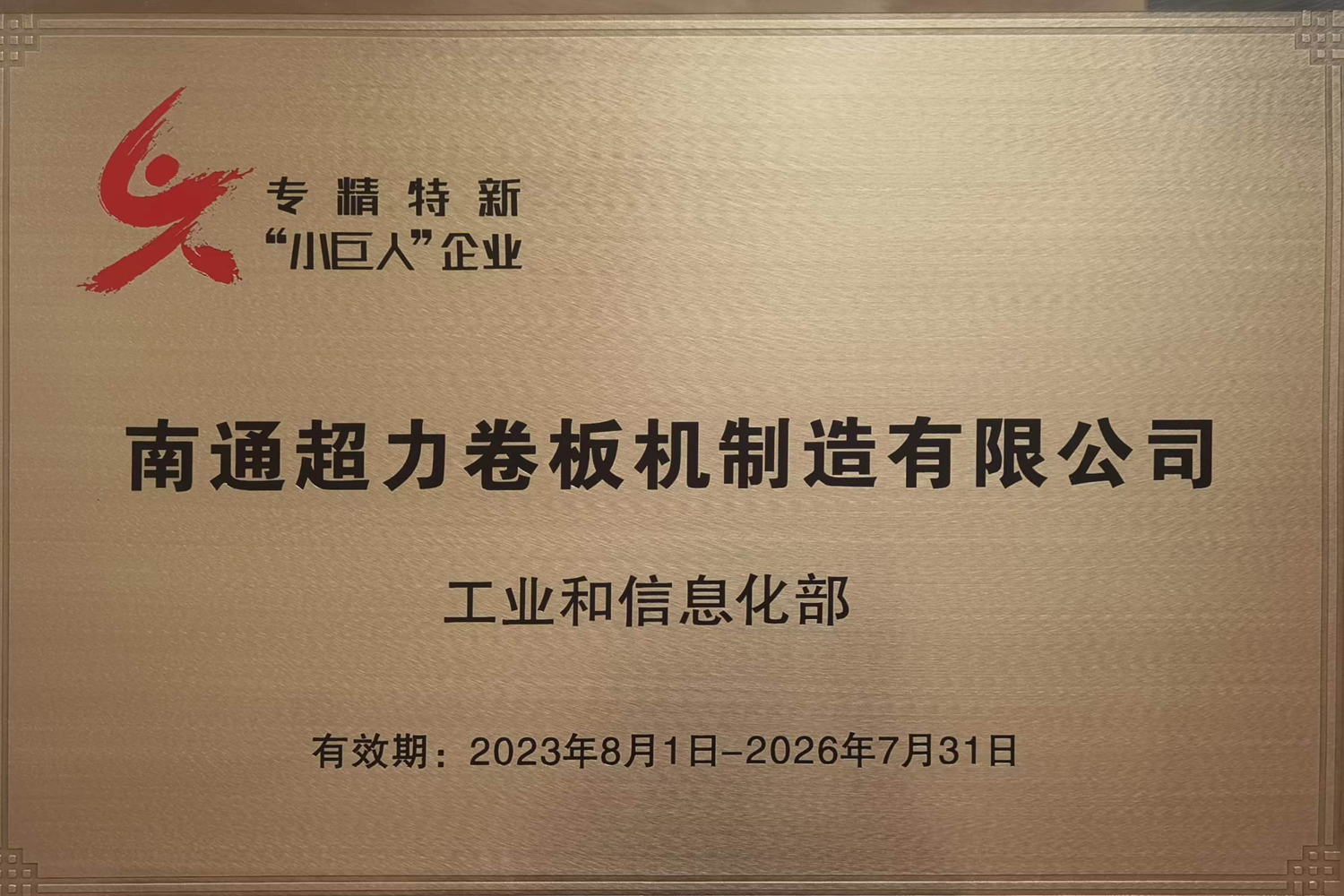 近日,江蘇省工信廳發(fā)布《關于江蘇省第五批專精特新“小巨人”企業(yè)和第二批專精特新“小巨人”復核通過企業(yè)名單的公示》。我們南通超力卷板機制造有限公司上榜第五批國家級專精特新“小巨人”企業(yè)名單。